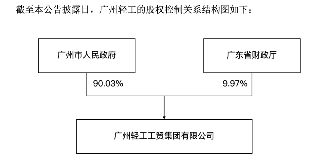 截至该公告披露日,广州市人民政府持有广州轻工90.03%股权诚信双赢,广东省财政厅持有广州轻工9.97%股权。
