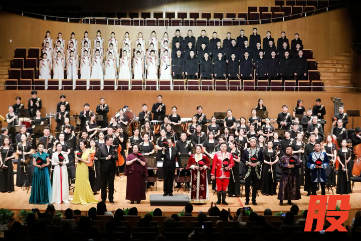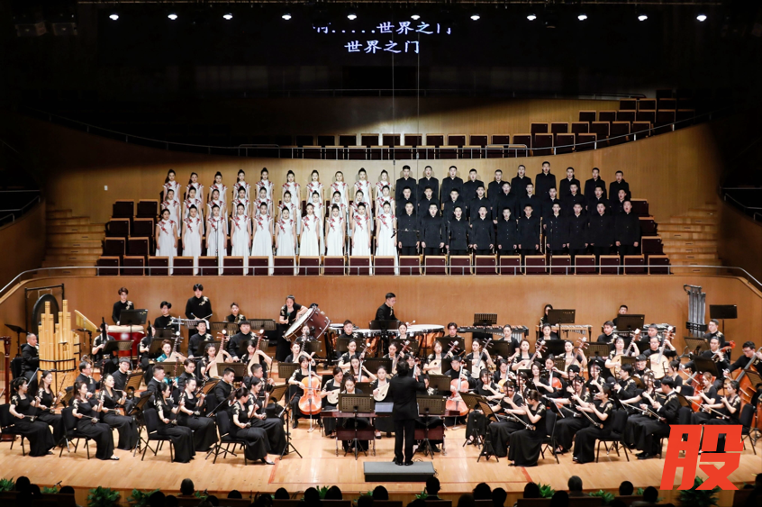 开篇“物之声”中,《丝》旋律如丝轻柔,织就文明交融的经纬;《马》则是双胡琴与乐队的激昂共鸣,带领观众走入浩瀚万里的丝路征途。“乐之声”中,《炫》汇聚手鼓、冬不拉、萨塔尔、马头琴和巴乐曼五种民族特色乐器,呈现丝路文化“各美其美、美美与共”千年传承;《融》交织琵琶的奔放与中阮的温润。“情之声”中,《平安,平安》娓娓传递祈愿,《璀璨之光》赞颂丝路精神。终曲《世界之门》响起,百人合唱团与乐团的管弦齐鸣融为一体,以磅礴气势将演出推向高潮。